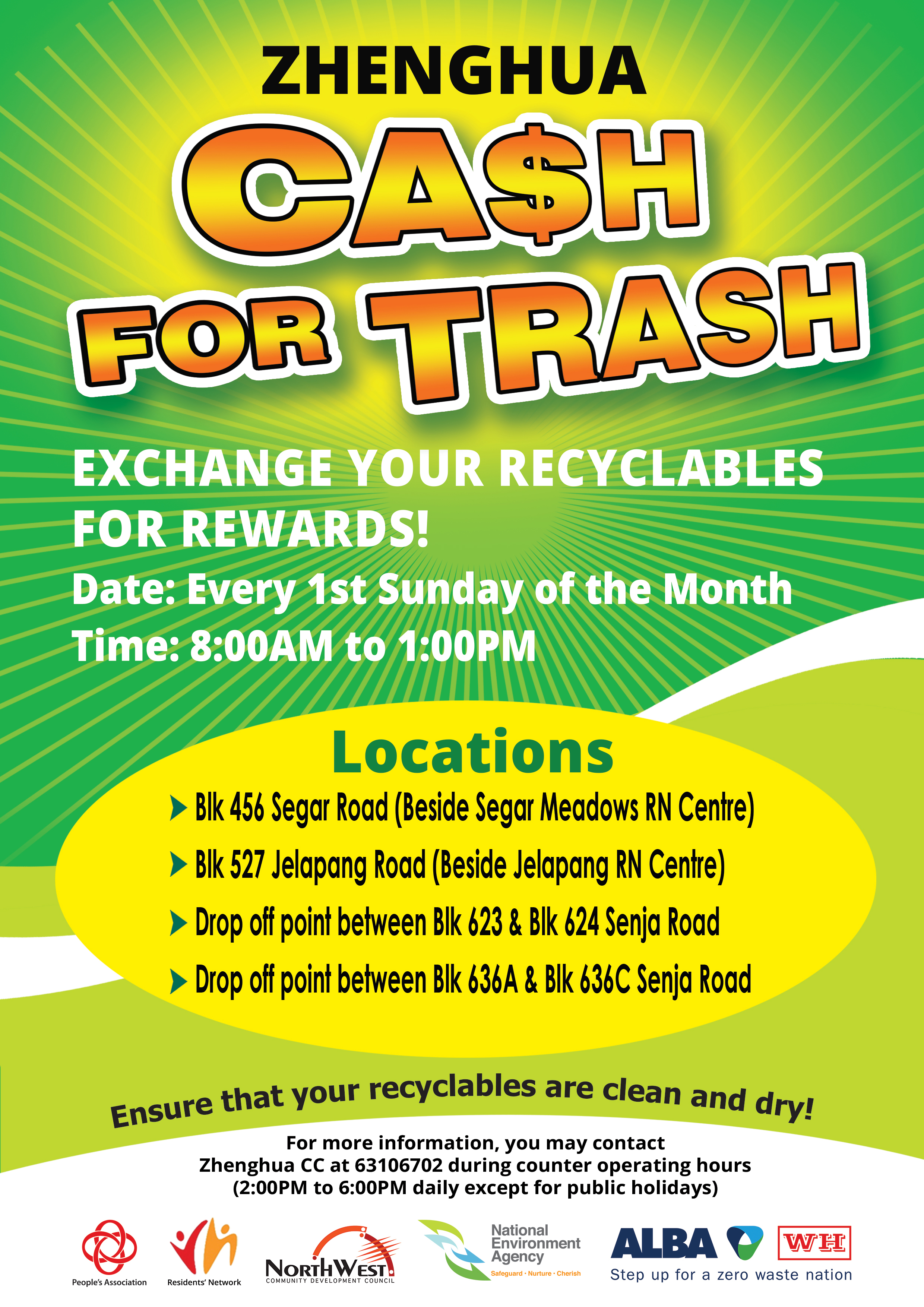 This empowers you to exchange your recyclables for cash at conveniently located stations across Zhenghua.